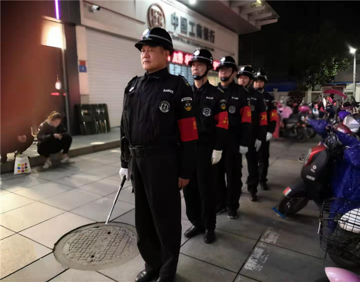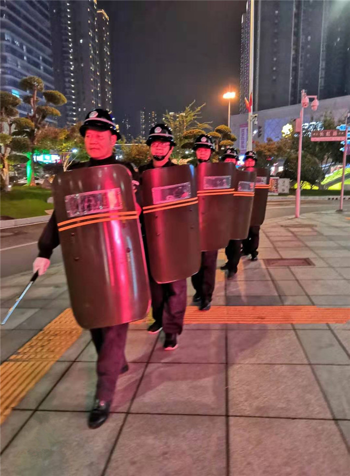 戎安保安隊(duì)員個(gè)個(gè)目光犀利,身姿挺拔,堅(jiān)守的身影帶給人們滿滿的安全感。